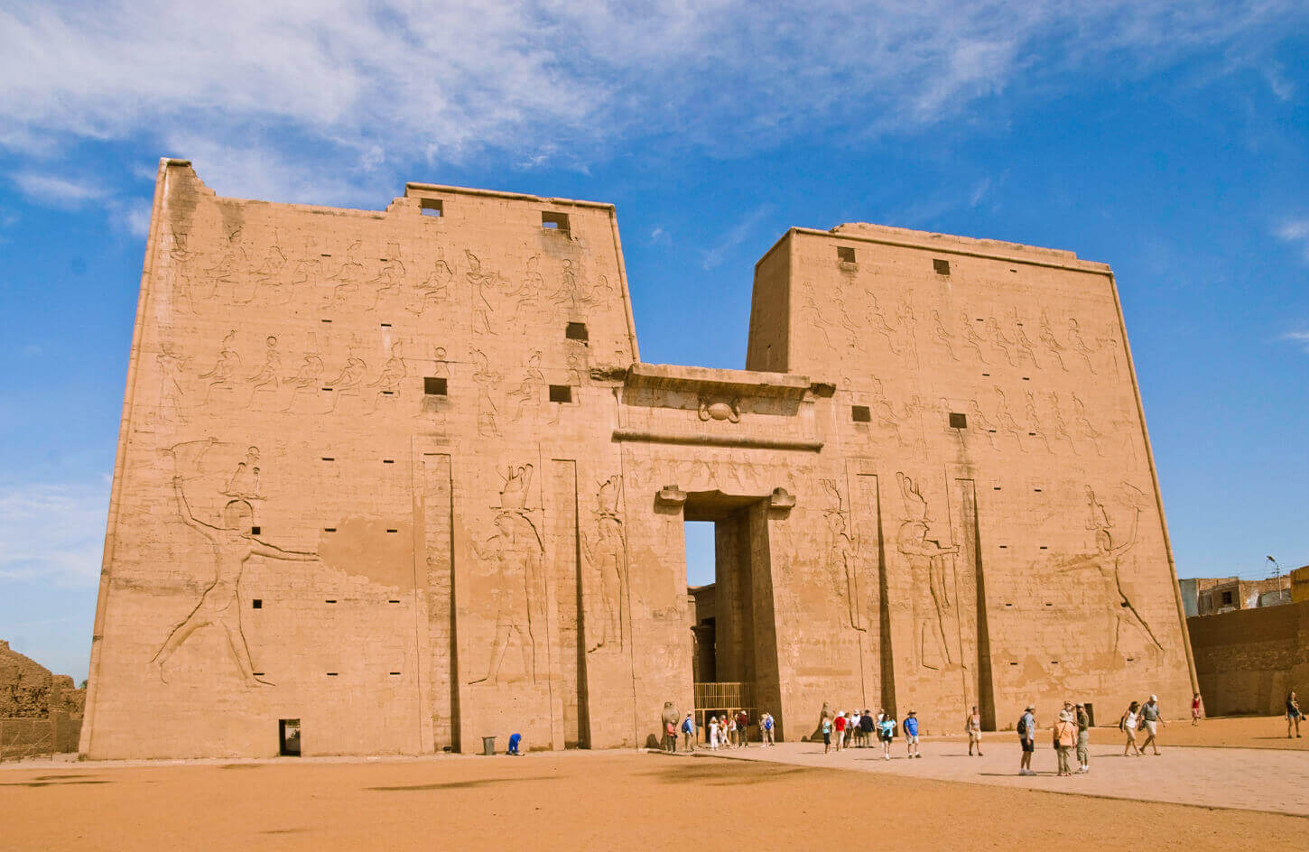 In the afternoon, arrive at Edfu and travel by horse-drawn carriage to the Temple of Horus, one of the best-preserved temples in Egypt, with soaring columns and intricate reliefs. After your visit, return to the cruise for afternoon tea, dinner, and evening entertainment as you continue toward Esna.