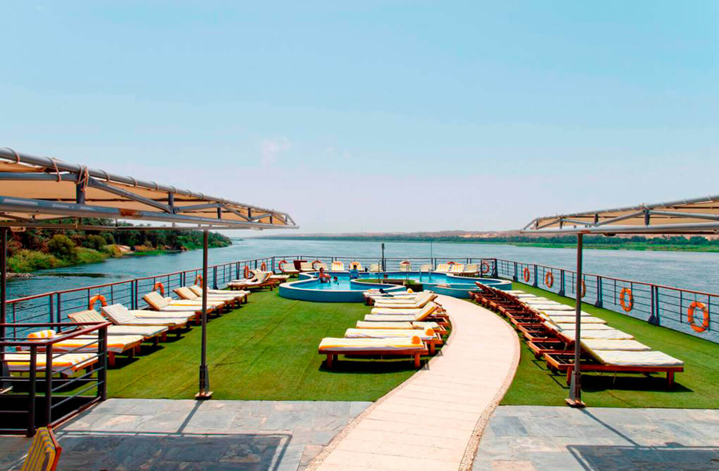 The Nile Premium Nile Cruise offers a sophisticated and comfortable journey along the iconic Nile River. Combining modern luxury with traditional Egyptian charm, this cruise is designed for travelers seeking both relaxation and cultural discovery. Guests enjoy spacious cabins with elegant interiors and large windows that frame stunning views of the river and surrounding landscapes.