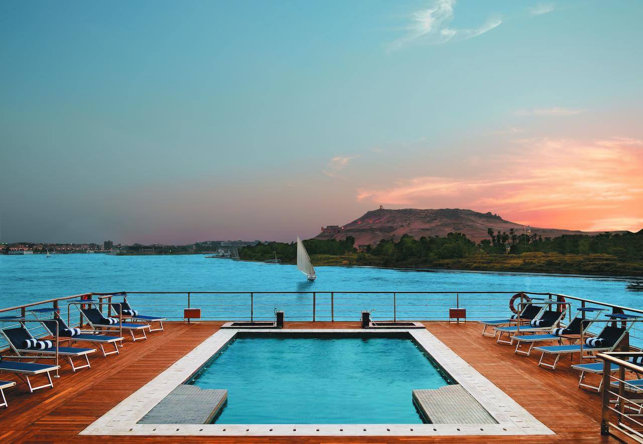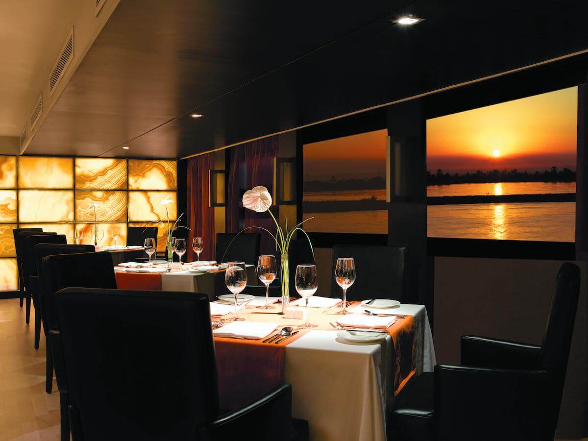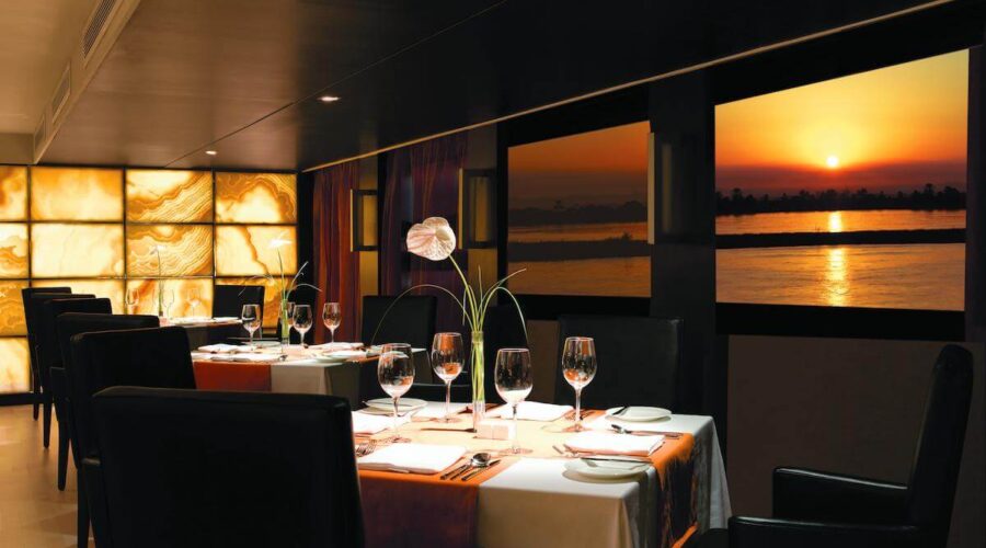 From the moment guests step aboard, they are enveloped in an atmosphere of refined elegance. The ship’s architecture moves away from traditional cruise aesthetics, favoring spacious, modern comfort and clean lines. This floating sanctuary features generously sized cabins and luxurious suites—many boasting floor-to-ceiling windows or private terraces—that allow for uninterrupted, breathtaking views of the ever-changing Nile scenery.