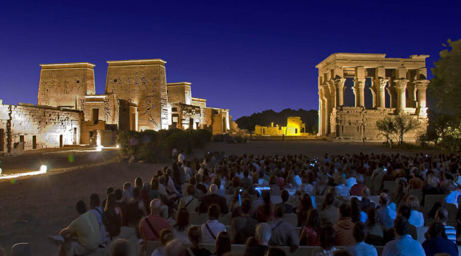 Experience the mesmerizing Sound and Light Show at Philae Temple, a magical 1-hour journey that will transport you back to ancient Egypt. As the sun sets, your guide will pick you up from your Nile cruise or hotel in Aswan, and you’ll embark on a romantic boat trip to Philae Temple Island, where the adventure begins.